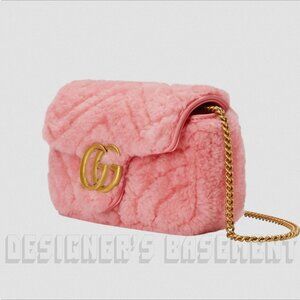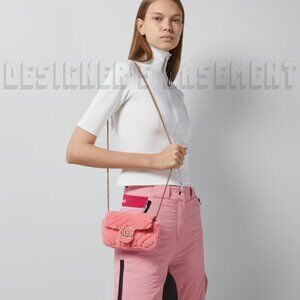 GUCCI pink Super Mini GG MARMONT Shearling Matelasse Crossbody shoulder Bag NIB