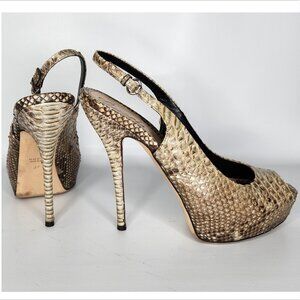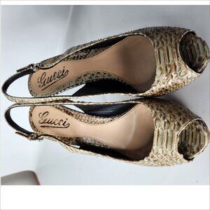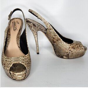 GUCCI vintage 37 natural Python Leather Stiletto PLATFORM slingback shoes Authen