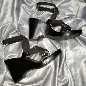 GUCCI wrap up strappy wedge platform heels with velcro ankle wrap