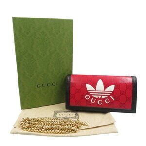 GUCCI x adidas GG Crystal Chain Wallet Red Black Canvas Leather