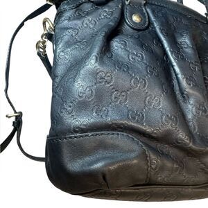 Authentic Gucci Black Guccisima Leather Medium Sukey 2way Satchel