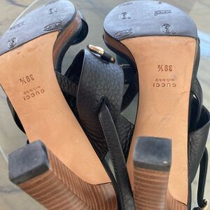 GUCCI Black leather 4 inch heel with bamboo and silver detail. Maybe worn once. Heel and sole protectors added (costs 75.00 at shoe repair). Buckle closure. Size 9.5.