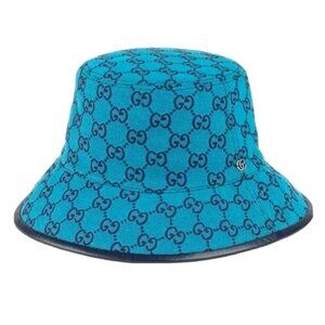 ⭐️GUCCI⭐️GG Monogram Canvas Leather Trim Bucket Hat Color: Turquoise, black Size or dimension: Medium - 57 cm Condition: Excellent used condition. Kept in storage. Any sign of wear consistent with hat being in storage. Comes with: As is Please pay attention to pics as they are part of the description. All measurements are an approximation. Price reflects condition. Trusted 5-star seller since 2017. Please feel free to ask any questions!⭐️