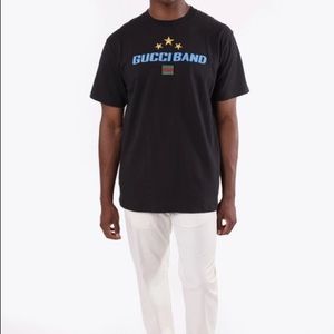 Gucci’s signature tropes – playful detailing and bold motifs– are evident in this season’s collection. The Gucci Band T-Shirt is crafted from cotton in a jersey weave, featuring crewneck, “Gucci Band” print detail at front, short sleeves and signature green and red web detail.