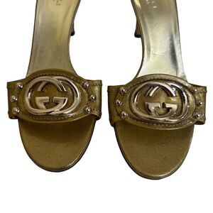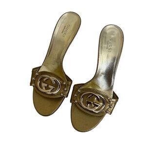 GUCCI Metallic Interlocking G Logo Slides is gentle worn. Made in Italy. Size: 37 (US size: 7)
