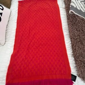 GUCCI Pink and Orange Wool GG Jacquard Scarf