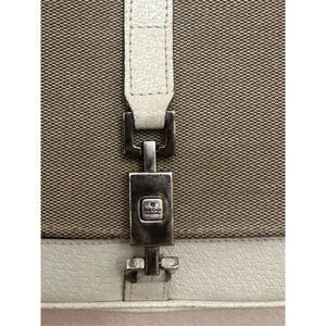 This Gucci Jackie shoulder bag is crafted from a combination of leather and canvas, featuring a beige color that complements its elegant design. The bag measures 16cm in height, 26cm in width, and 4cm in depth, with a strap length of 52cm, making it a practical choice for daily use.