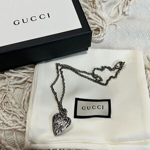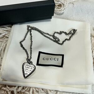 GUCCI Sterling Silver Necklace with Engraved Heart Omnia Amor Amantibus