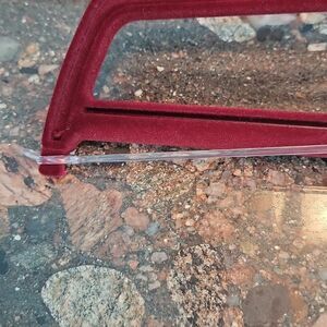 Gucci red velvet hanger. Elastic band keeps pants securely in place, making this a great travel hanger! Smoke free home.