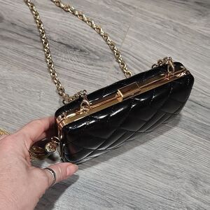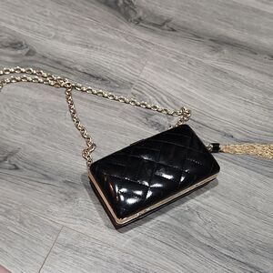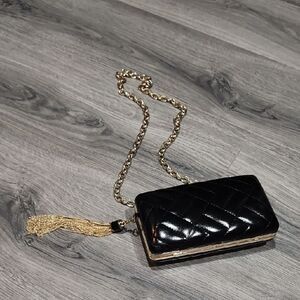 GUC Giani Bini Quilted Pantent BLACK Hardshell Clutch Bag, tassel chain for character. Bag can be clutch or shoulder bag. beautiful and classic. No flaws