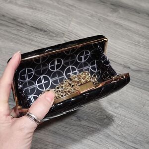 GUC Giani Bini Quilted Pantent BLACK Hardshell Clutch Bag