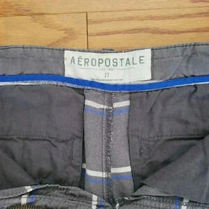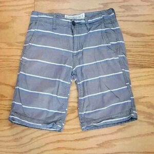 GUC Men's Grey, blue, white stripe shorts. Above knee. Size 27 Waist. Smoke Free Home. 4 pockets, 2 front to back.