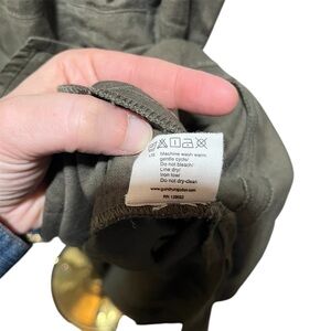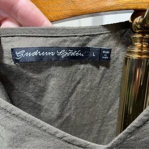 GUDRUN SJODEN ~ Olive Green Linen Tank Dress with Asymmetric Hem. Size large. In good preowned condition.