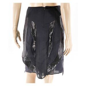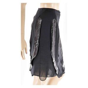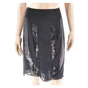 GUERRIERO Shiny Ruffles Black Lined Knee-Length Pencil Skirt NWT