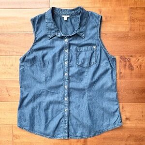 GUESS 100% Cotton Sleeveless Denim Button-Up Shirt Womens XL
