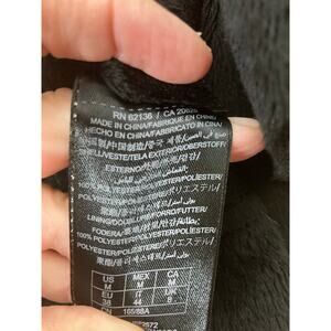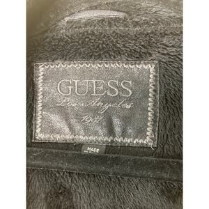 GUESS 1981 Faux Leather Jacket Roll Faux Fur Collar &Lining Black Size M. In great condition.Just has one sleeve zipper missing the fob. One eye & hook front closure. Lined in faux black fur. Nice!