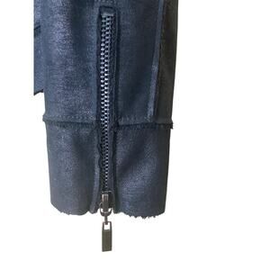 GUESS 1981 Faux Leather Jacket Roll Faux Fur Collar &Lining Black Size M