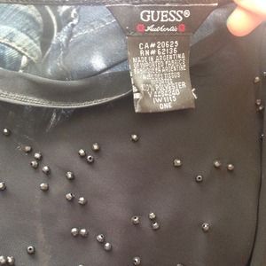 GUESS Chiffon Beaded Poncho Style Top. Ties at one shoulder, hangs down to knee on one side. Very unique. Can be worn with a tube top underneath and shorts, or even over a bathing suit!! Fabulous find!!