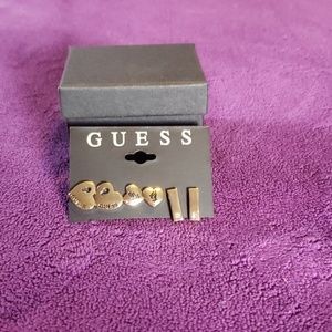 These GUESS earrings haven't been worn. Like new condition they come in a gift box. They are in a gold color finish with black detail.