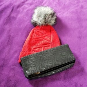 GUESS lightweight jacket is gray and a size small. The jacket is missing its belt(Update: the belt has been found and will go with the jacket) and will come with the AX Armani Exchange winter hat the color is red and Estee Lauder beauty bag the color is black with black details.