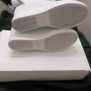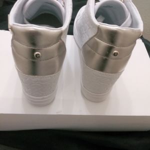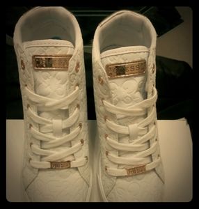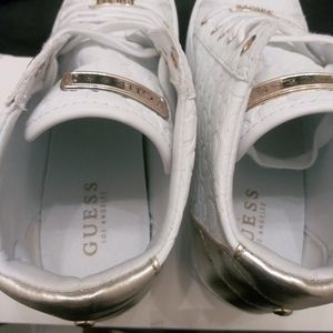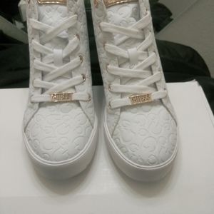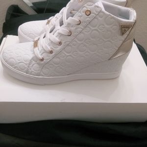 CUTE GOLD AND WHITE GUESS WEDGE SHOES. WORN ONCE IN NEW CONDITION
