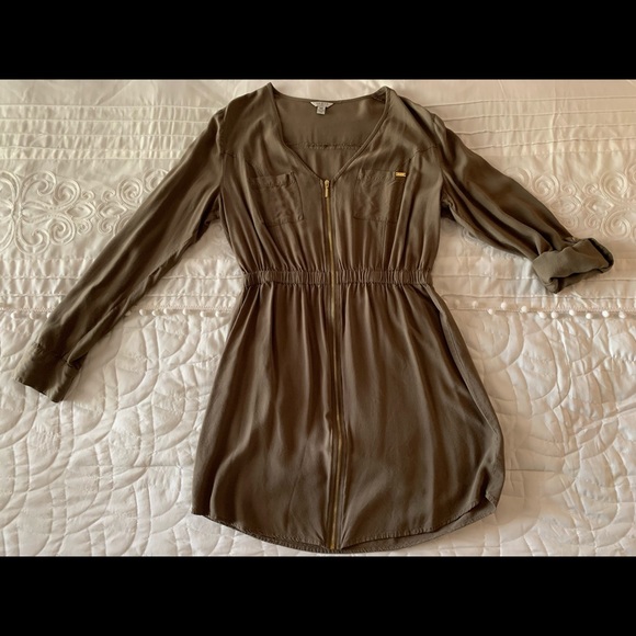 Size medium olive green dress. It can be used with sleeves down or folded up.