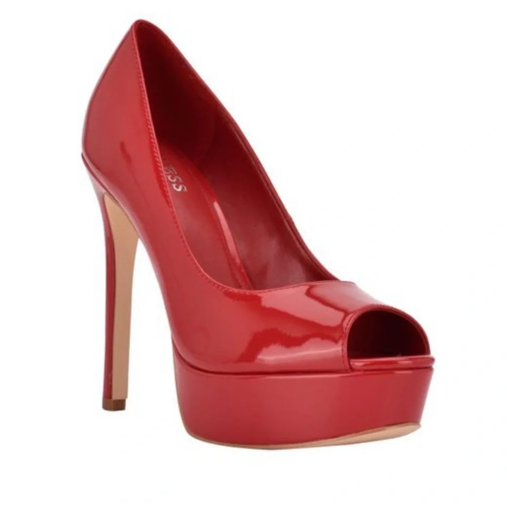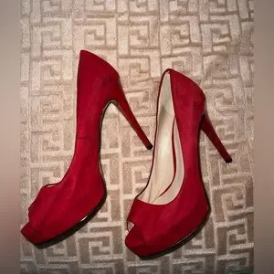 Women's Red Cacei Peep Toe Platform Pumps Good condition. Some stains please see pictures below. First picture for show only: