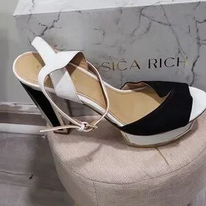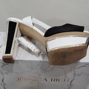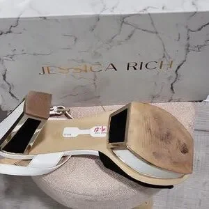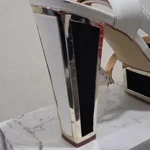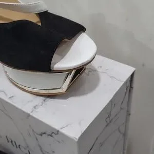 blk white & gold heeled sandals