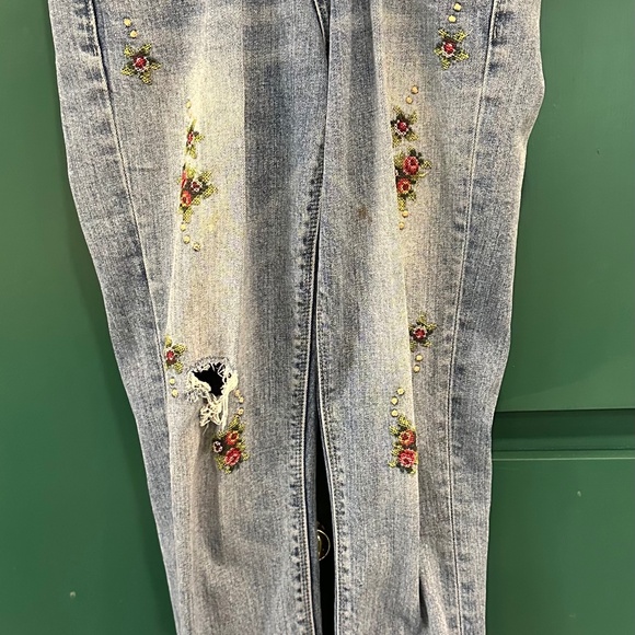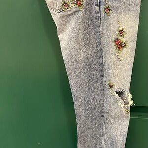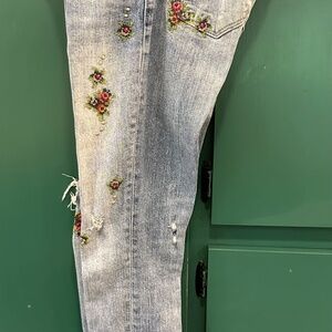 Guess Jeans, low rise in size 25 - ornate with flowers and holes are in the right spots - so fun to wear !