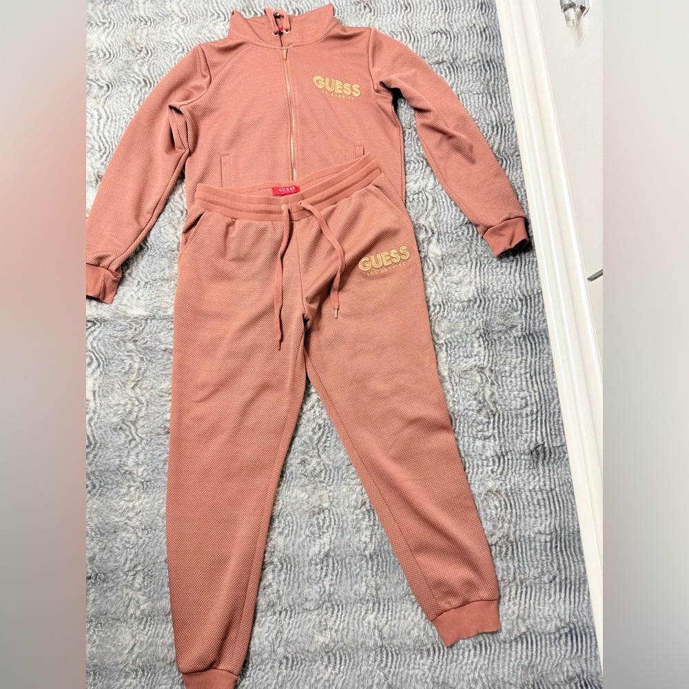 Cozy and stylish jogger set by GUESS. Features a soft fabric and relaxed fit. Ideal for casual wear.