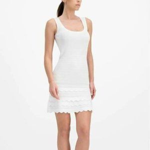 Tiered trim at the skirt is a playful touch to this sleeveless sweater dress from GUESS, complete with a scalloped finish at the hem.