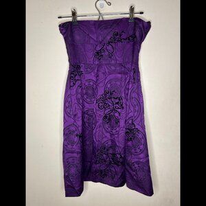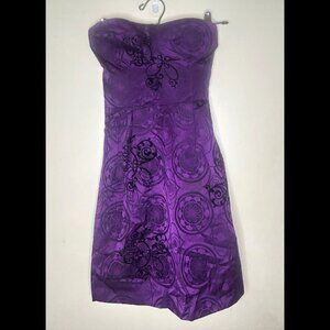 GUESS BLACK LABEL Purple Silk Strapless Dress w Velvet Design Junior Sz 3