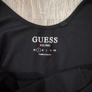 This gorgeous black Guess bodysuit is sleek, sexy, and super flattering. Made with a soft, stretchy fabric that hugs your curves in all the right places, it features a stylish neckline and a modern, fitted silhouette perfect for a night out or dressing up any outfit.