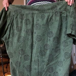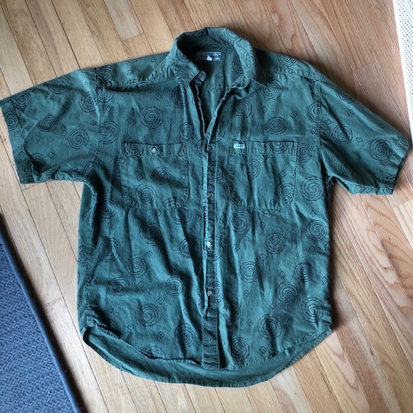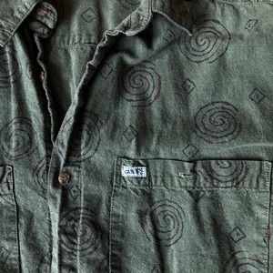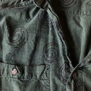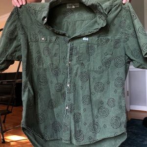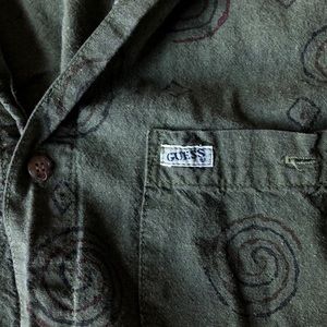 Green and printed GUESS button down. Is marked a men’s small but would fit a medium as well.