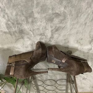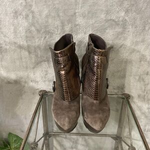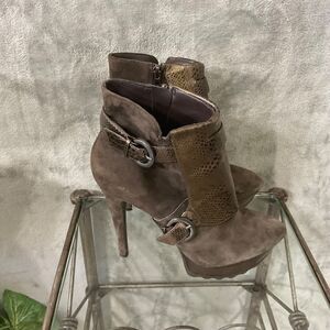 GUESS BY MARCIANO BROWN SUEDE snake print BUCKLED ZIP stacked Booties womens size 9M
