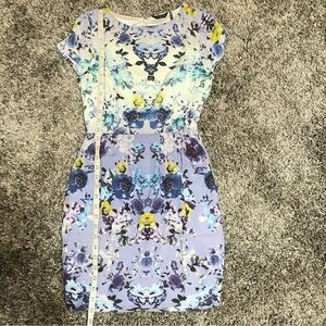 GUESS BY MARCIANO ~Lilacs & Blues Floral Print Dress w/ Dip-Dye Effect ~Size XS