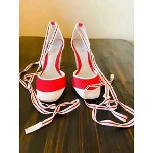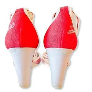 GUESS BY MARCIANO RED WHITE LEATHER TEXTILE WEDGE SHOES
