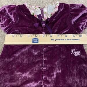 GUESS Baby Crushed Velvet Dress Purple with Buttons Bows Back Zip Sz 12M Velour