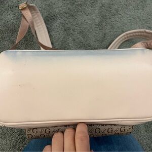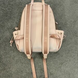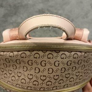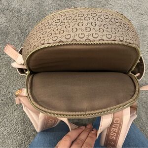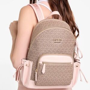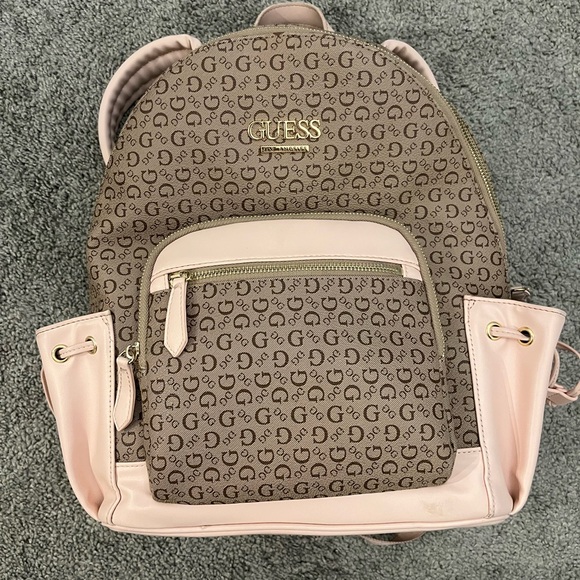 Stylish GUESS backpack in soft pink with signature logo pattern. Features a front zip pocket. Retails for $80. Used for a couple of months. See pictures for condition. Open to offers. ☺️