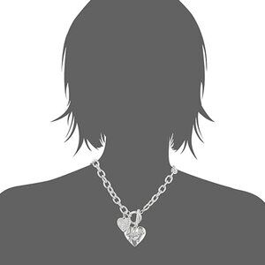 GUESS "Basic Silver Logo Heart and Pave Heart Toggle Pendant Necklace