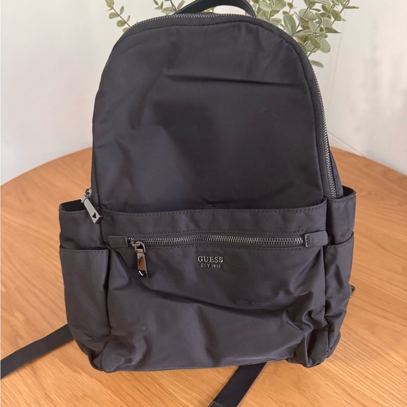 Stylish GUESS backpack. Features front zipper pocket. Perfect for everyday use.