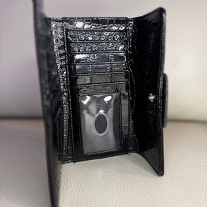 GUESS Black Croc-Embossed Tri-Fold Wallet