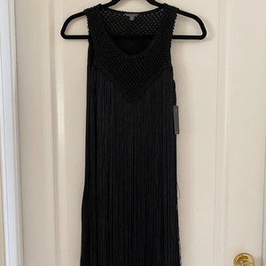 GUESS Black Crochet-Yoke Fringe Shift Dress