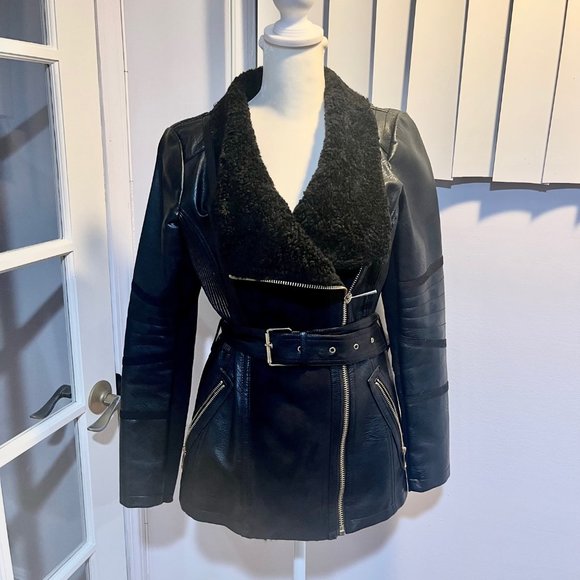 GUESS Black Faux Leather & Suede Jacket Sz S euc