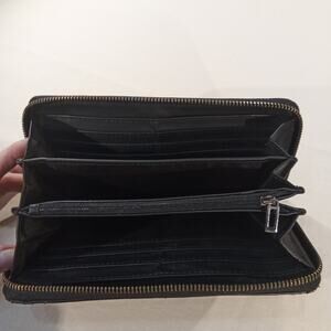 GUESS Black Floral Zip Around Wallet Monogram Faux Leather Logo Design