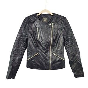 GUESS Black Geonna Faux Suede Vegan Leather Quilted Moto Jacket SIZE XS