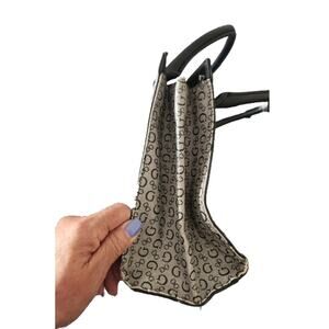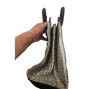 This GUESS tote bag is a versatile and stylish accessory, featuring the brand’s iconic “G” monogram print in black and gray with black faux leather trim. It offers a structured silhouette, rolled handles, and plenty of space to organize your daily essentials.