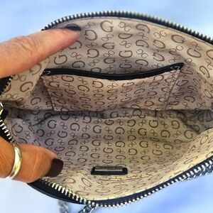 GUESS Black Monogram Shoulder/Crossbody Bag Silver Chain Detail EUC