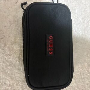 Sleek black pouch by GUESS. Features a zip closure. Ideal for essentials.