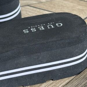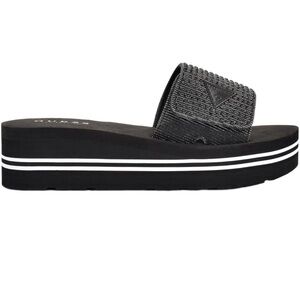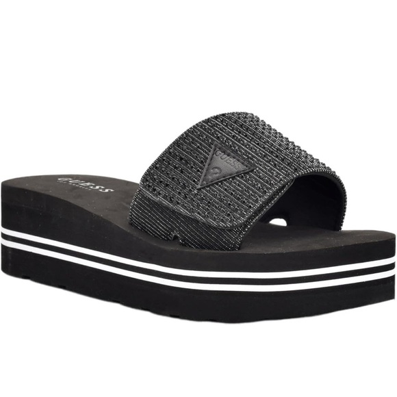 Step up your style with these chic black platform slides from GUESS. Perfect for casual outings, these sandals offer both comfort and elegance.